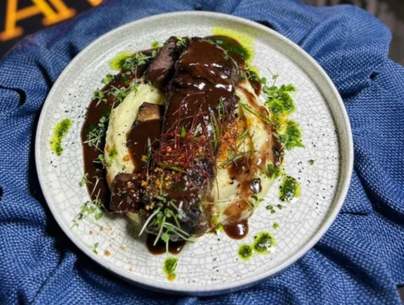Мраморное ребро быка с картофельным кремом