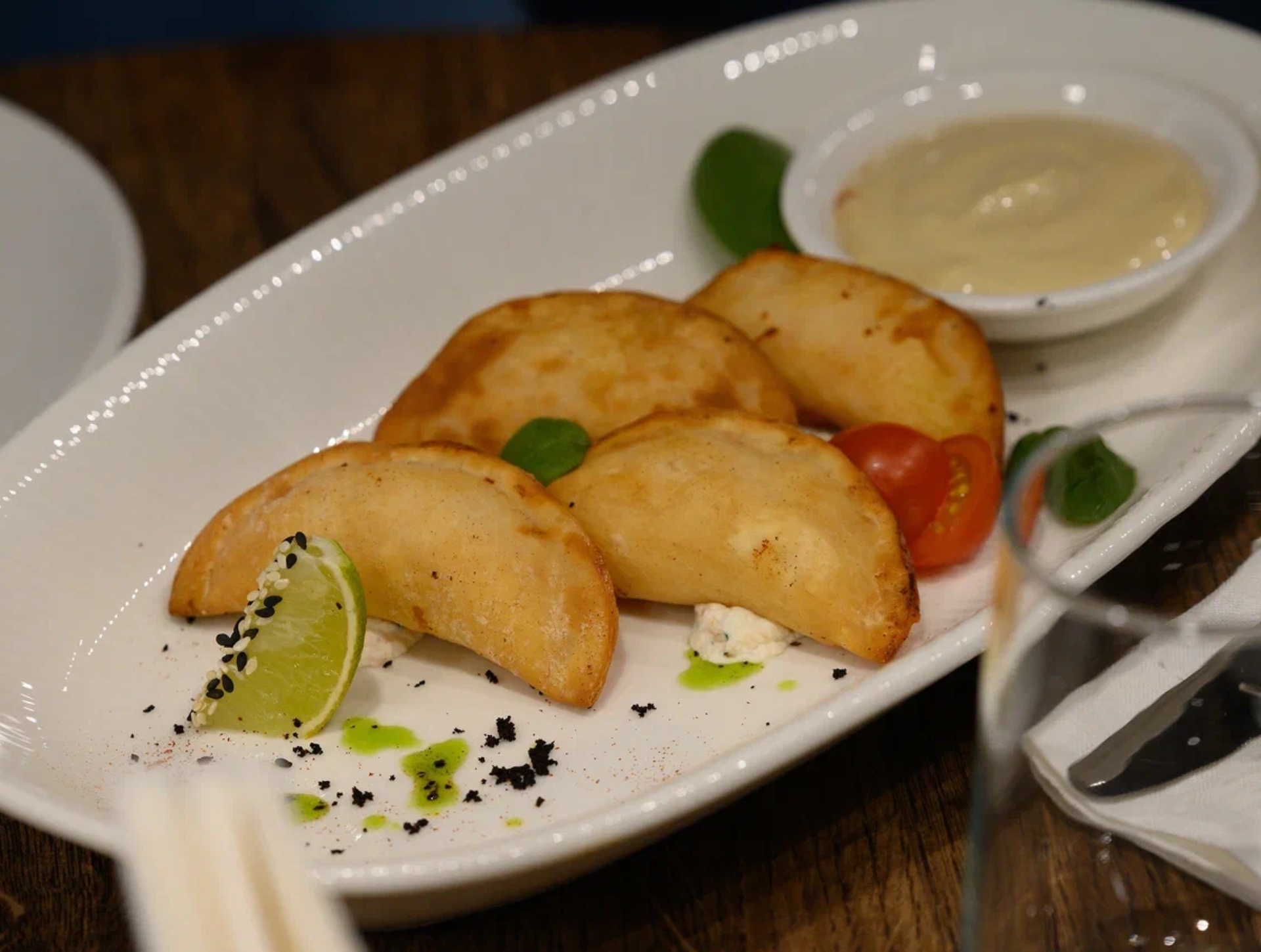 Хрустящие чебуреки с лангустином и пикантным соусом